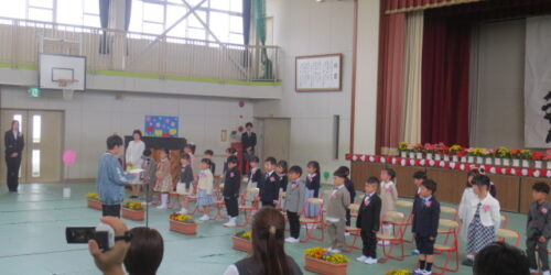 本日松尾小学校では、22人の新入児童を迎え入学式を行いました。 一年生の入場を子どもたちが待ちます。 1年生が入場しまし...