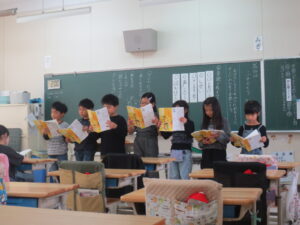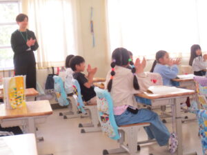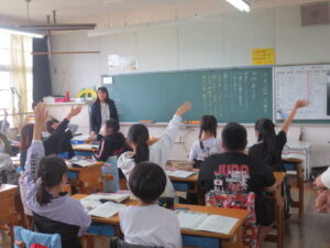 朝、子どもたちに、「がんばって、いっぱい発表しようね。」と話すと。